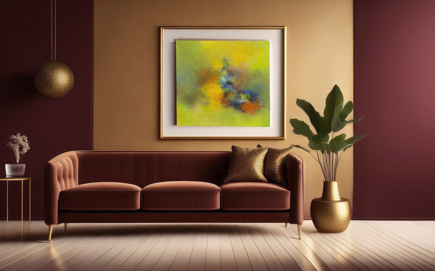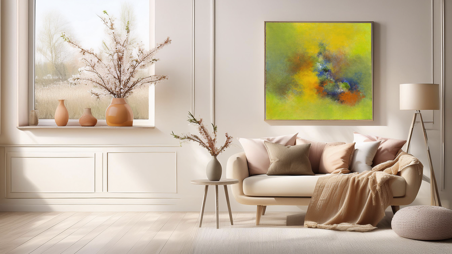 Este tipo de combinación funciona porque el arte abstracto, por su esencia, no tiene barreras estilísticas. Las líneas fluidas, los juegos de color y las texturas de la pintura pueden complementar tanto un sofá vintage de terciopelo como una mesa de acero y vidrio ultramoderna.