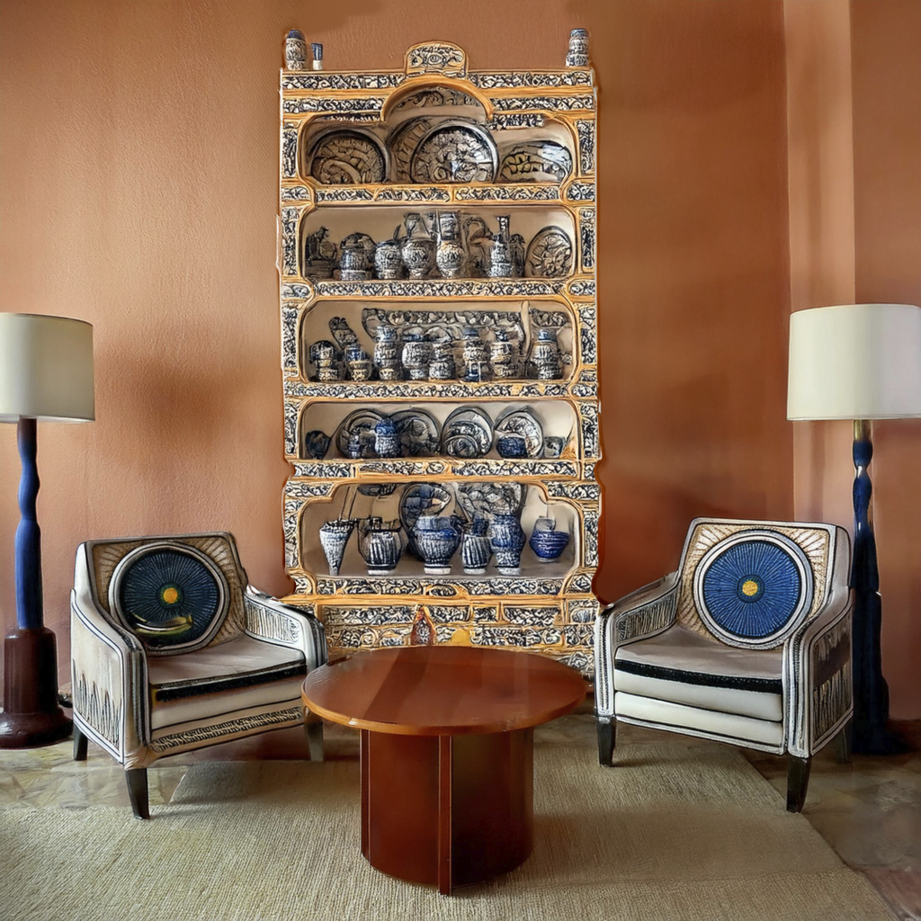 - Combina cuadros abstractos con piezas de cerámica o tejidos tradicionales.