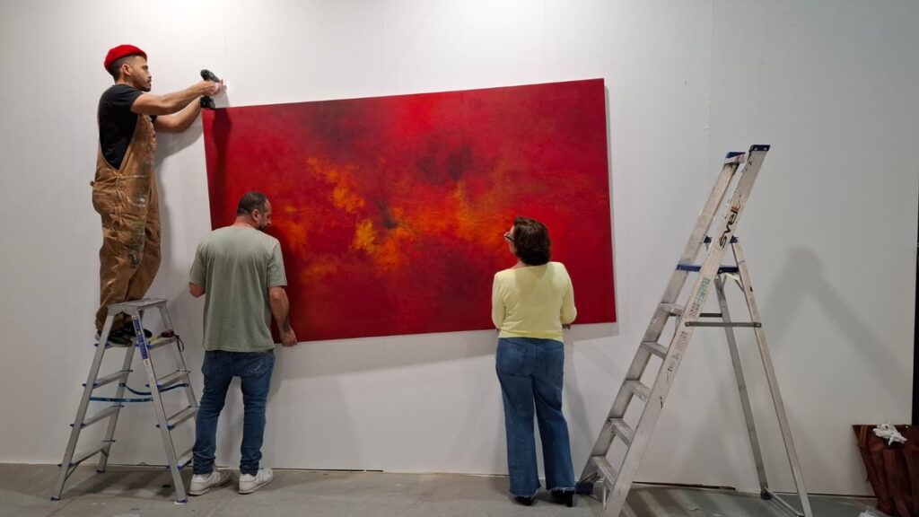Rojo, pero con Modales se mostró en una pared de 6 m x 3,20 m, como pieza única y con presencia autónoma dentro del espacio.